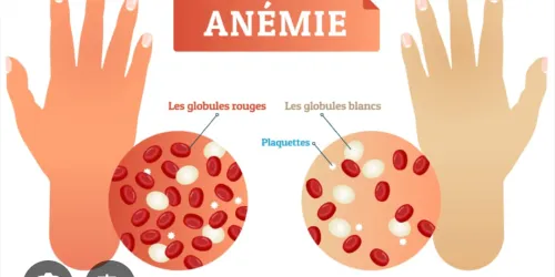 L'anémie est une condition médicale caractérisée par une diminution du nombre de globules rouges dans le sang ou une réduction de la quantité d'hémoglobine dans ces cellules. Cela peut entraîner des symptômes tels que la fatigue, la faiblesse, les étourdissements et la pâleur de la peau. L'anémie peut être causée par une carence en fer, en vitamine B12 ou en acide folique, ainsi que par des maladies chroniques ou des troubles gastro-intestinaux.
