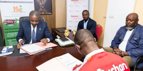 La cérémonie de signature s’est déroulée en présence de Charles Ahifon, Responsable recrutement, représentant le DG d’Auchan CI, d'Oumar Bakayoko, DG de TECTRA CI, partenaire technique de la PFS Cocody et de Mathieu KATCHIA, Conseiller municipal et Président du comité Local d’Insertion des Jeunes, PCA de la PFS Cocody pour ne citer que ceux-ci.