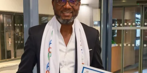Le moment fort de la soirée fut sans conteste la remise de la 𝐆𝐮𝐢𝐫𝐥𝐚𝐧𝐝𝐞 𝐝'𝐇𝐨𝐧𝐧𝐞𝐮𝐫 à l'Office National des Sports (ONS). Cette distinction, équivalente aux plus hautes marches du podium dans le réseau mondial FICTS, a été réceptionnée avec émotion par Binka𝐌. 𝐆𝐛𝐞𝐡 𝐁𝐢𝐧𝐤𝐚, Secrétaire principal de l'ONS, et 𝐌. 𝐊𝐚𝐜𝐨𝐮 𝐉𝐞𝐚𝐧-𝐁𝐚𝐩𝐭𝐢𝐬𝐭𝐞 𝐊𝐨𝐮𝐚𝐬𝐬𝐢, initiateur du projet.