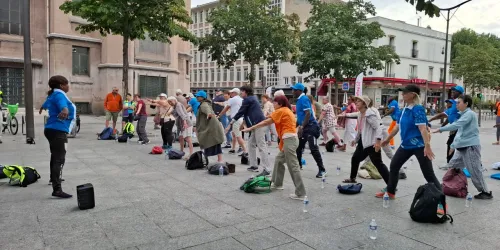 A la suite de la séance d’échauffement collective, deux parcours urbains en boucle de 7 km et 9 km ont proposés, permettant à chacun de marcher à son rythme tout en découvrant les beautés de Paris autrement.