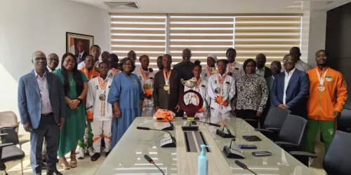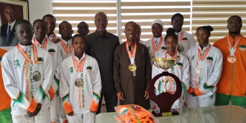 Conduits par le président de la Fédération Ivoirienne de Judo, M. Seydou Dabonné, les athlètes ont officiellement présenté leurs médailles à leur parrain avant de lui remettre le trophée de la Coupe d’Afrique des juniors, brillamment remporté lors du tournoi.