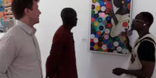 <<nous sommes de jeunes artistes. Je viens de Dakar et je suis là pour accompagner Omar, un jeune peintre talentueux, mon associé depuis quelques temps. J’apprécie beaucoup son art, porté sur le réalisme grâce à des portraits».