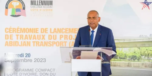 Le Premier Ministre Patrick ACHI a procédé en présence de l’Ambassadeur des États-Unis d’Amérique SE Mme Jessica DAVIS BA, au lancement des travaux de réhabilitation et d’aménagement d’environ 21 kilomètres de voiries, inscrits dans le cadre du projet Abidjan Transport (ATP). Cette cérémonie tenue au grand carrefour de Koumassi a vu également la participation du Secrétaire Général de la Présidence M. Abdourahmane CISSÉ, du Ministre de l’Équipement et de l’Entretien Routier, Dr Amédé Koffi KOUAKOU et de quelques membres du Gouvernement.