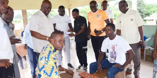 Nous allons jouer au football. En plus du football, nous allons chercher et promouvoir dans le terroir les valeurs qui sont les nôtres, comme l’Awalé, l’Agban et bien d’autres jeux, pour nous ressourcer et les transmettre aux générations futures », a indiqué Assi Ndin Théodore, à Ahuikoi, lors du coup d’envoi du tournoi inter-villages de football, qui a opposé, sur un score vierge (0-0), les équipes de Fiassé et d’Assié-Orié.